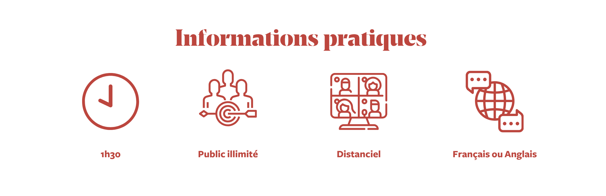 La conférence adopte un format inspirant et interactif, alternant apports, exemples concrets, questions au public et temps de réflexion. Elle se conclut par une synthèse des six étapes et un message clé : la carrière n’est pas un parcours imposé, mais une aventure à écrire. Un livrable est partagé aux participants pour mettre en place leurs prochaines actions.